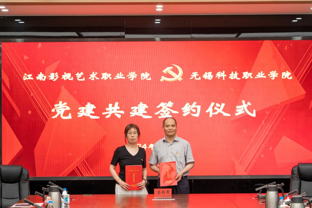 为全面推进基层党组织建设,搭建党建共建平台,发挥两校专业优势,实现同心同向、共同进步的党建工作新格局,6月19日下午,我校与江南影视艺术职业学院党建共建签约仪式在学校培训中心顺利举行。江南影视艺术职业学院党委书记高建宁、副校长曹建林,我校党委书记张国华、党委副书记华裕良,以及来自双方学校数字艺术学院、马克思主义学院的负责人及其教师代表参加了签约仪式。