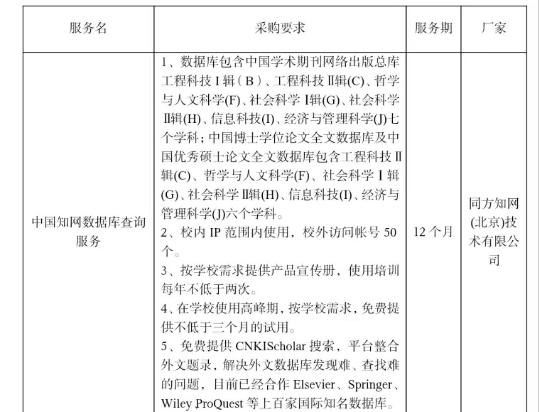 一、 采购项目名称: 中国知网数据库查询服务竞价项目