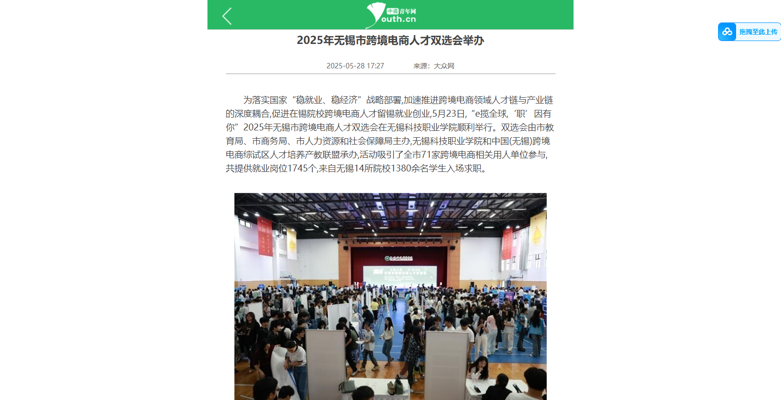 下一篇:学习强国:e揽全球 “职”因有你 2025年无锡市跨境电商人才双选会在无锡科院成功举办