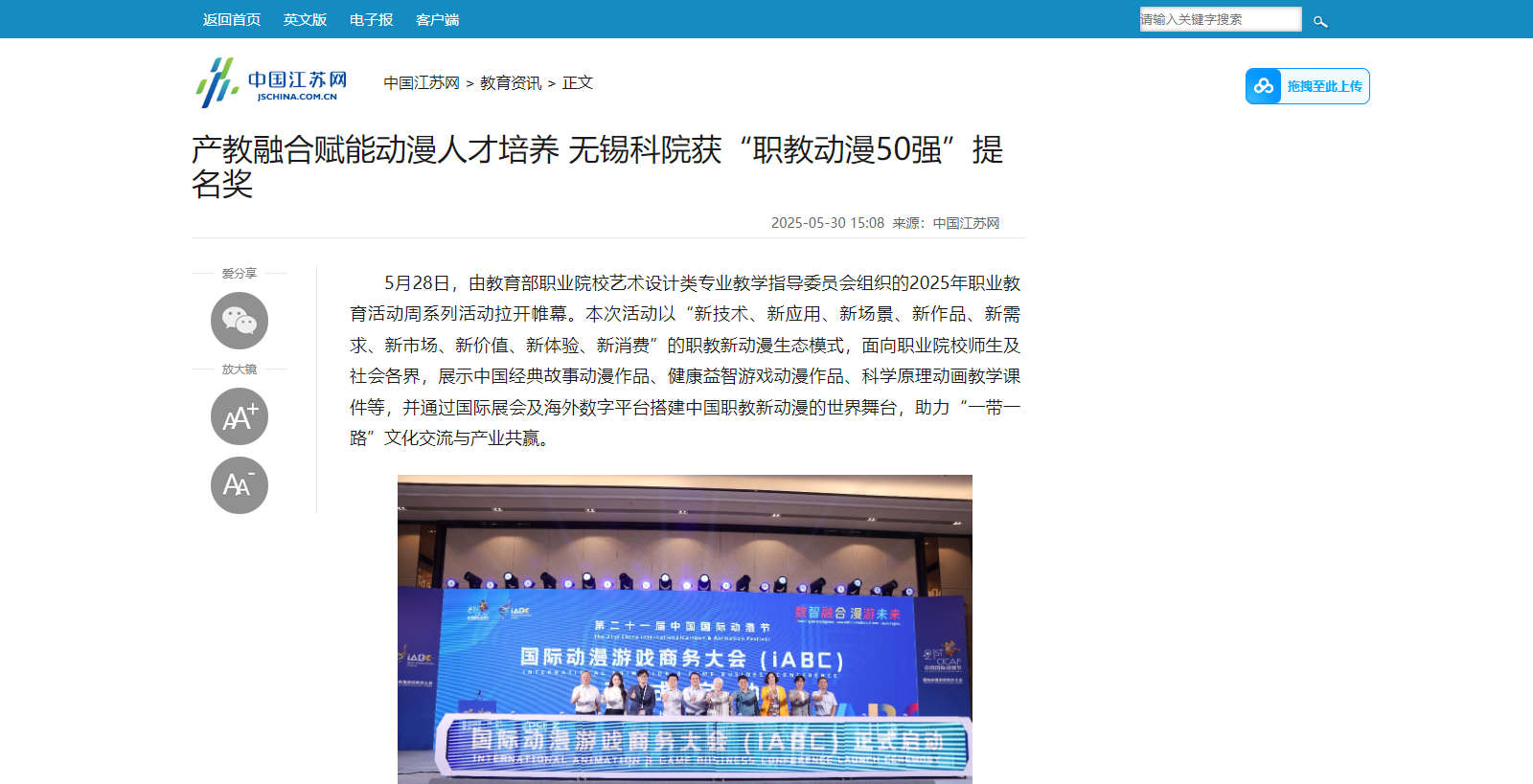 下一篇:学习强国:产教融合赋能动漫人才培养 无锡科院获“职教动漫50强”提名奖