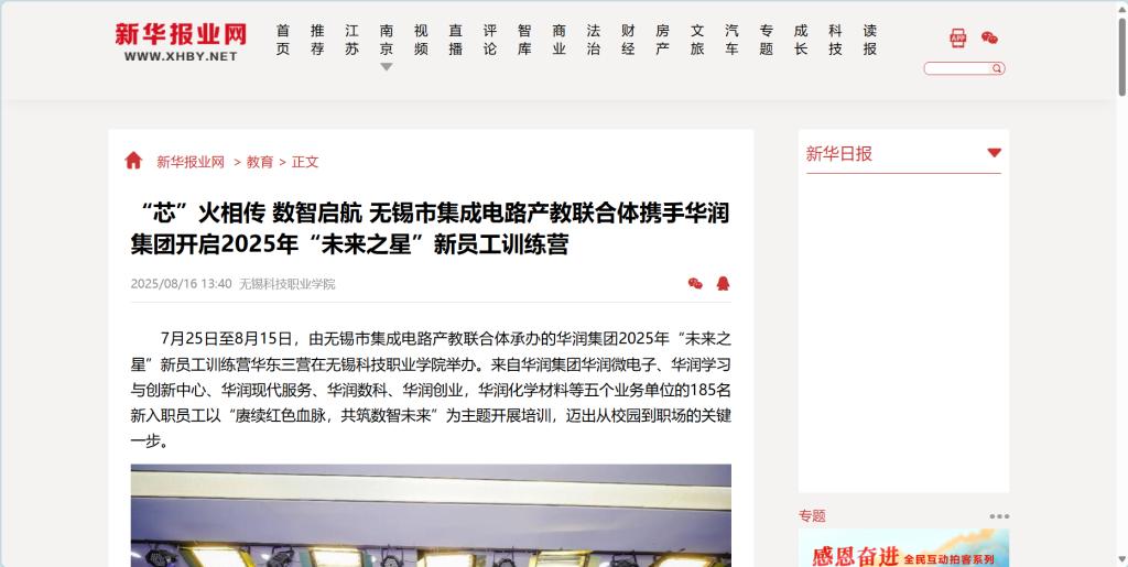 下一篇:中国江苏网:“芯”火相传 数智启航 无锡市集成电路产教联合体携手华润集团开启2025年“未来之星”新员工训练营