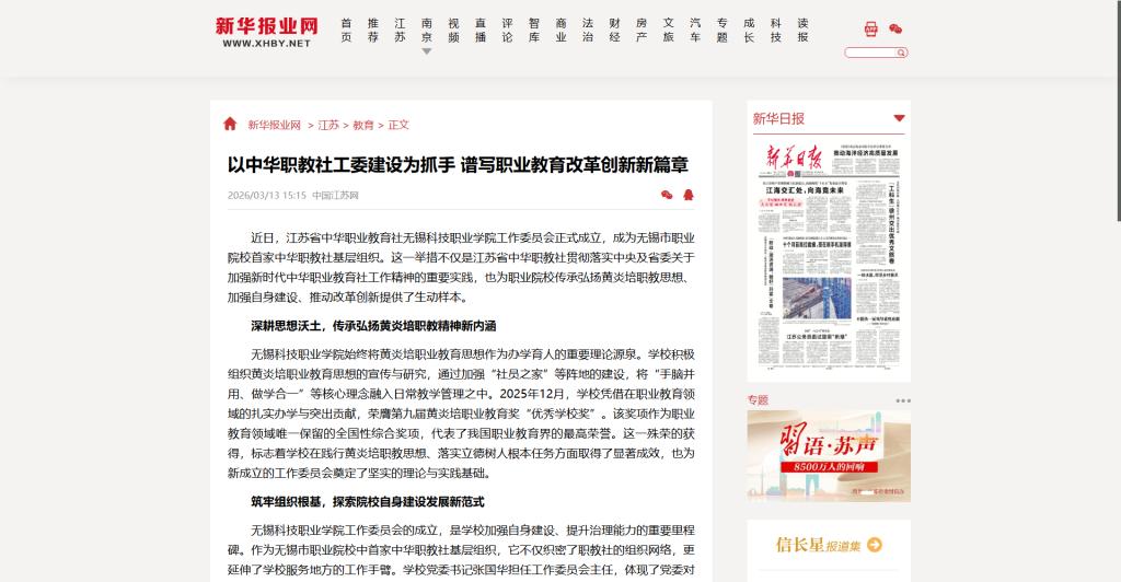 上一篇:中国江苏网:以中华职教社工委建设为抓手 谱写职业教育改革创新新篇章