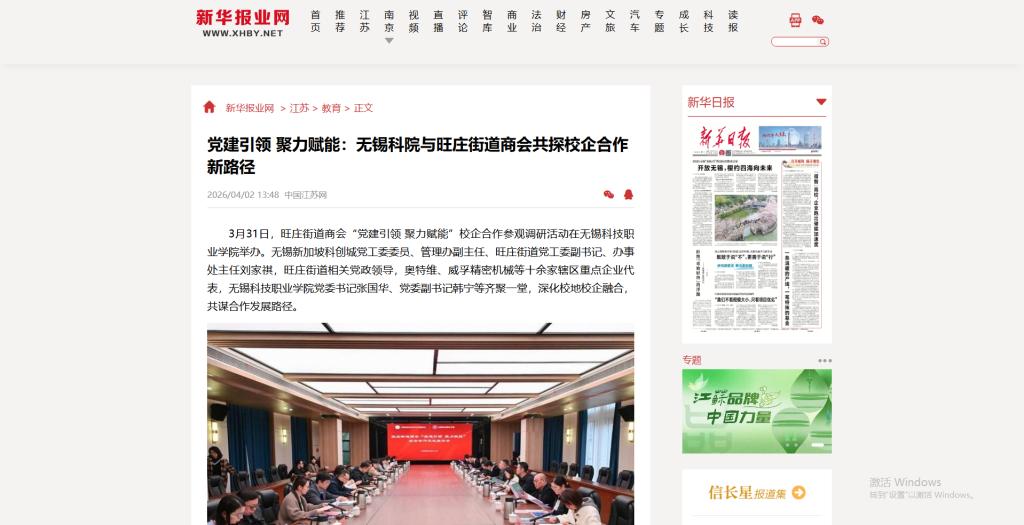 上一篇:新华报业网:产教融合再升级!无锡科院与无锡先导智能共启合作新篇