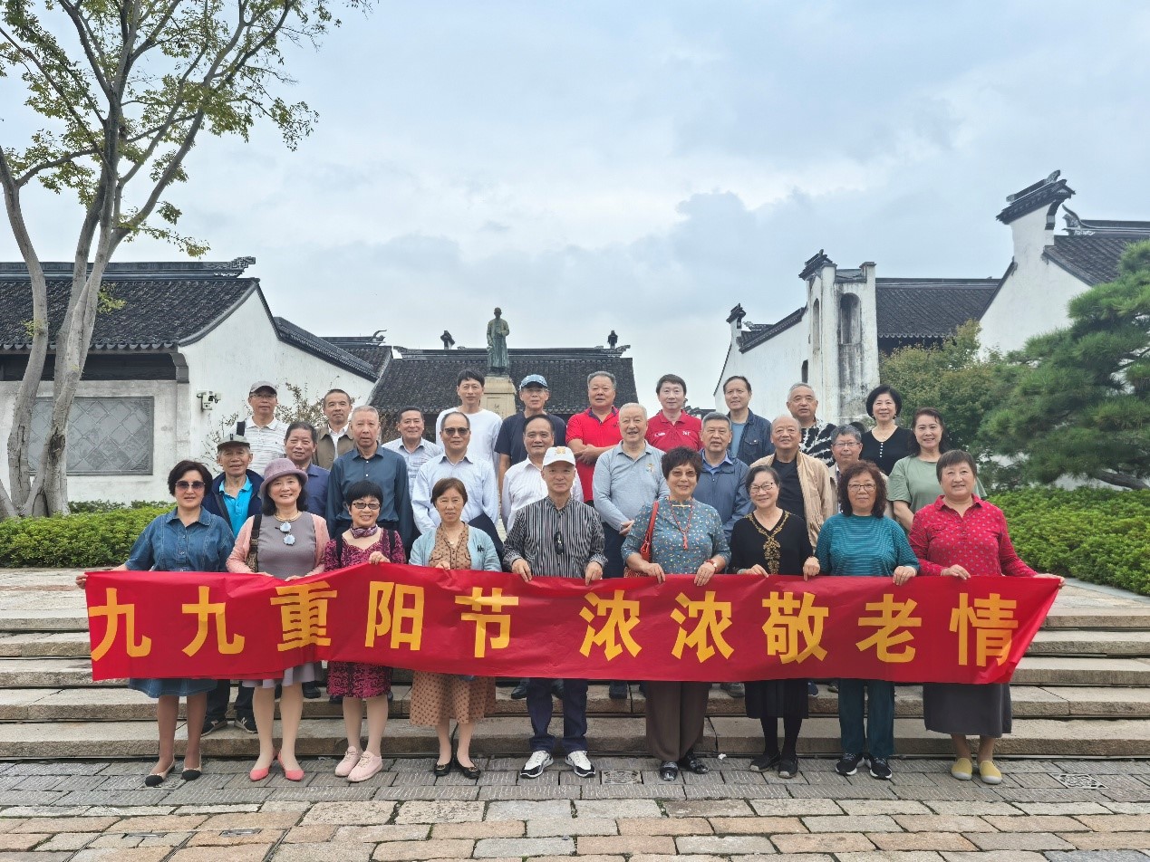 流年不弃桑榆晚,秋光冉冉映重阳。为庆祝新中国成立75周年,丰富广大退休教职工的生活,弘扬中华民族敬老、爱老、助老的传统美德,10月17日,学校退管会组织退休教职工前往惠山区堰桥“天上村前”历史文化街区,开展“浓情相聚 情暖金秋”重阳节活动。
