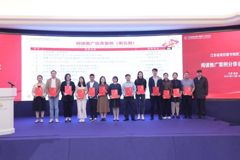 10月16日,江苏省高校阅读推广优秀案例分享会暨颁证仪式在南京召开。本次活动由江苏省高校图书情报工作委员会主办,江苏省高校图工委阅读推广专业委员会、江苏省图书馆学会阅读推广委员会、南京大学图书馆、南京农业大学图书馆、江苏凤凰新华书店集团有限公司承办。图书馆界及相关业界专家学者、图书馆工作者、企业代表共160余人参会。