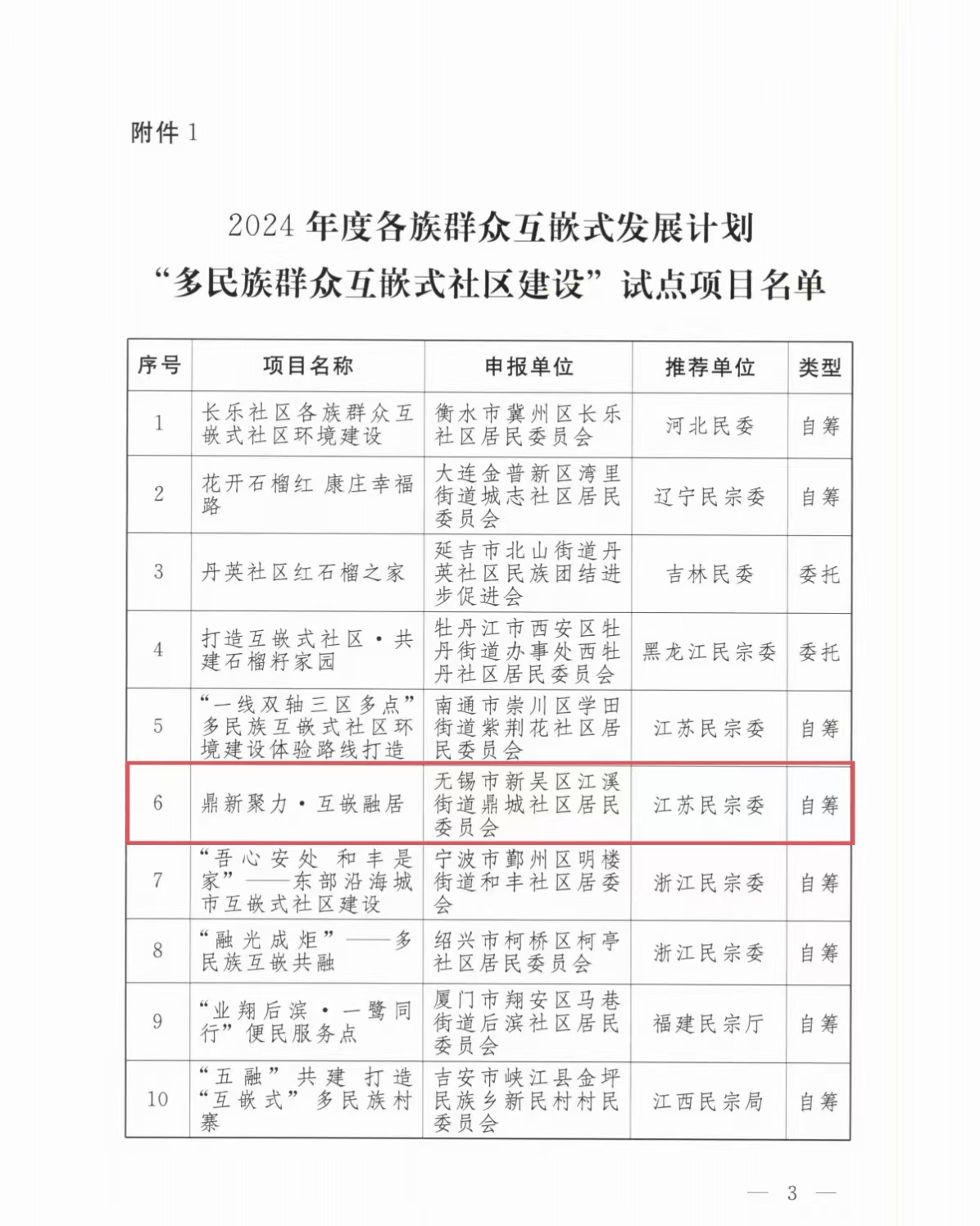 在“各族群众互嵌式发展计划2024年度试点项目”申报阶段,我校陈劲波博士因在中共新吴区委统一战线工作部(新吴区民族宗教事务局)实践锻炼,贡献专业所学,运用实践经验,与新吴区民族工作干部一道,协同江溪街道鼎城社区围绕“多民族群众互嵌式社区建设”申报工作。经省市逐级筛选,鼎城社区代表江苏省进入国家部委评审,最终获得国家级试点立项,实现了新吴区在民族团结、铸牢中华民族共同体意识工作方面的新突破。