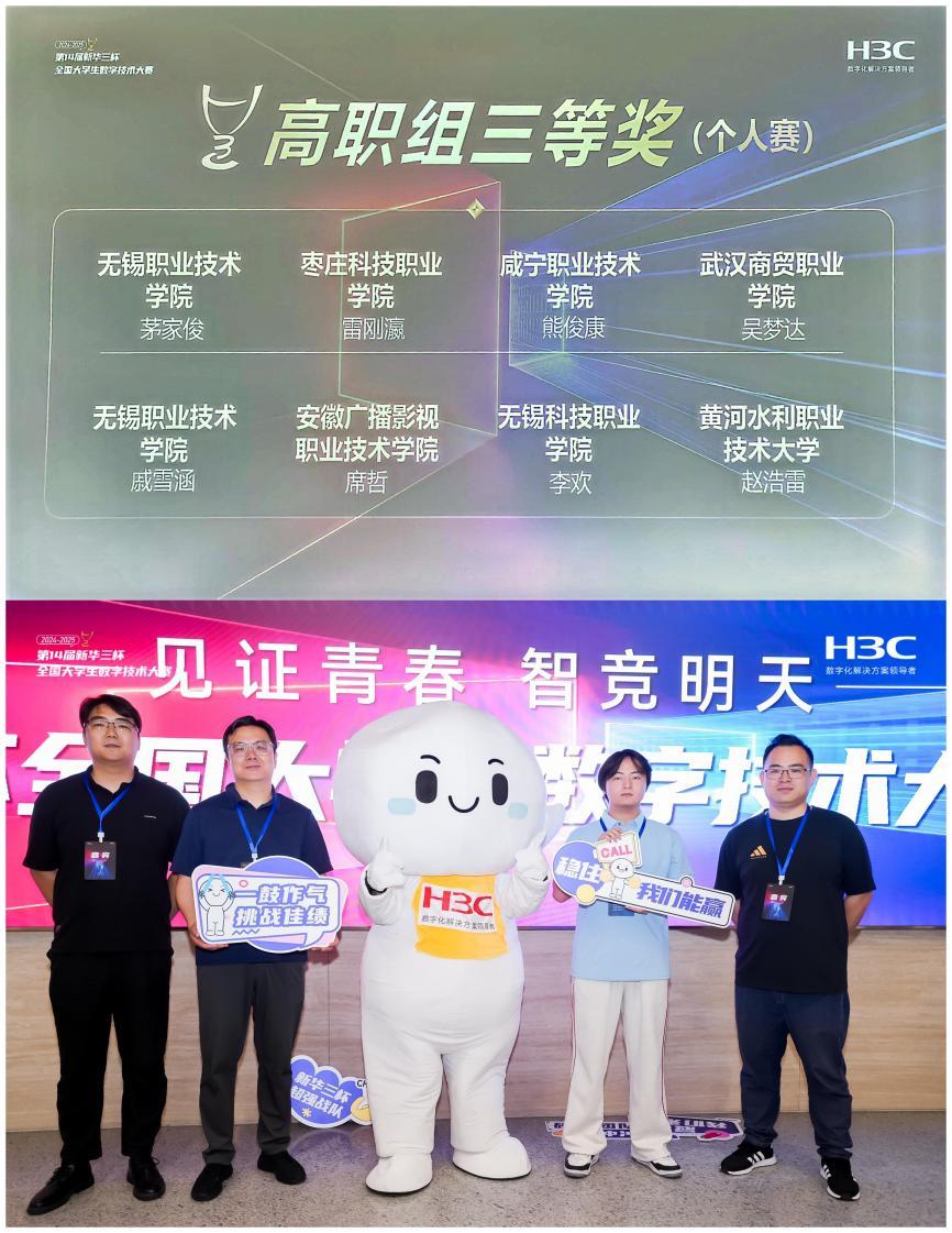 5月10日-12日,第十四届新华三杯全国大学生数字技术大赛总决赛在新华三集团杭州总部举行,我校物联网与人工智能学院学生获得总决赛三等奖。此外,在本届赛事中,还获得了省赛特等奖1人,三等奖3人的好成绩。