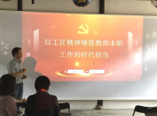 智能制造学院院长张国新、返聘教师赵伟、党员教师代表王莉莉做师德师风主题分享,讲述自己坚守教育初心、恪守职业道德、潜心教书育人的动人故事。