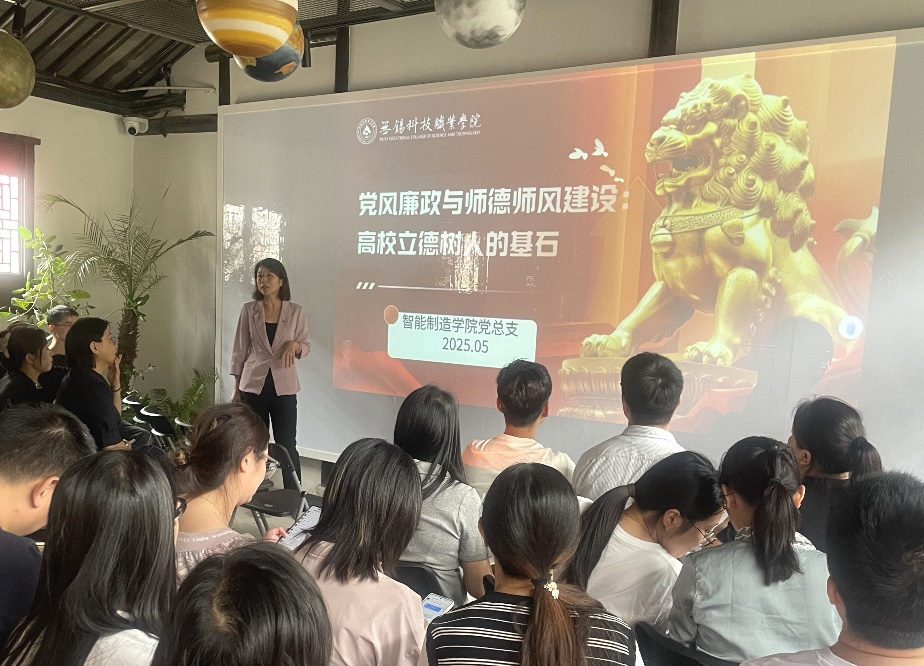 智能制造学院党总支书记鲍都娇以“党风廉政与师德师风建设:高校立德树人的基石”为主题讲党课。