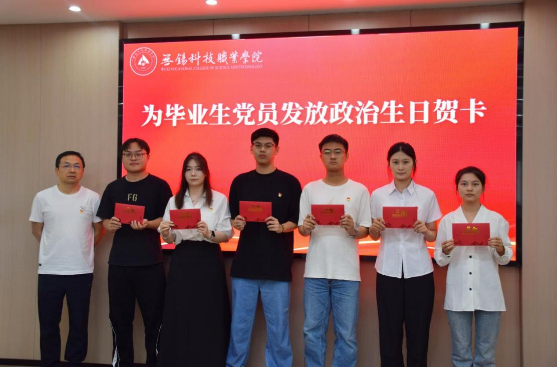 人工智能与信息党支部书记樊光辉、物联网党支部书记李晓莉分别为支部毕业生党员发放“政治生日贺卡”。