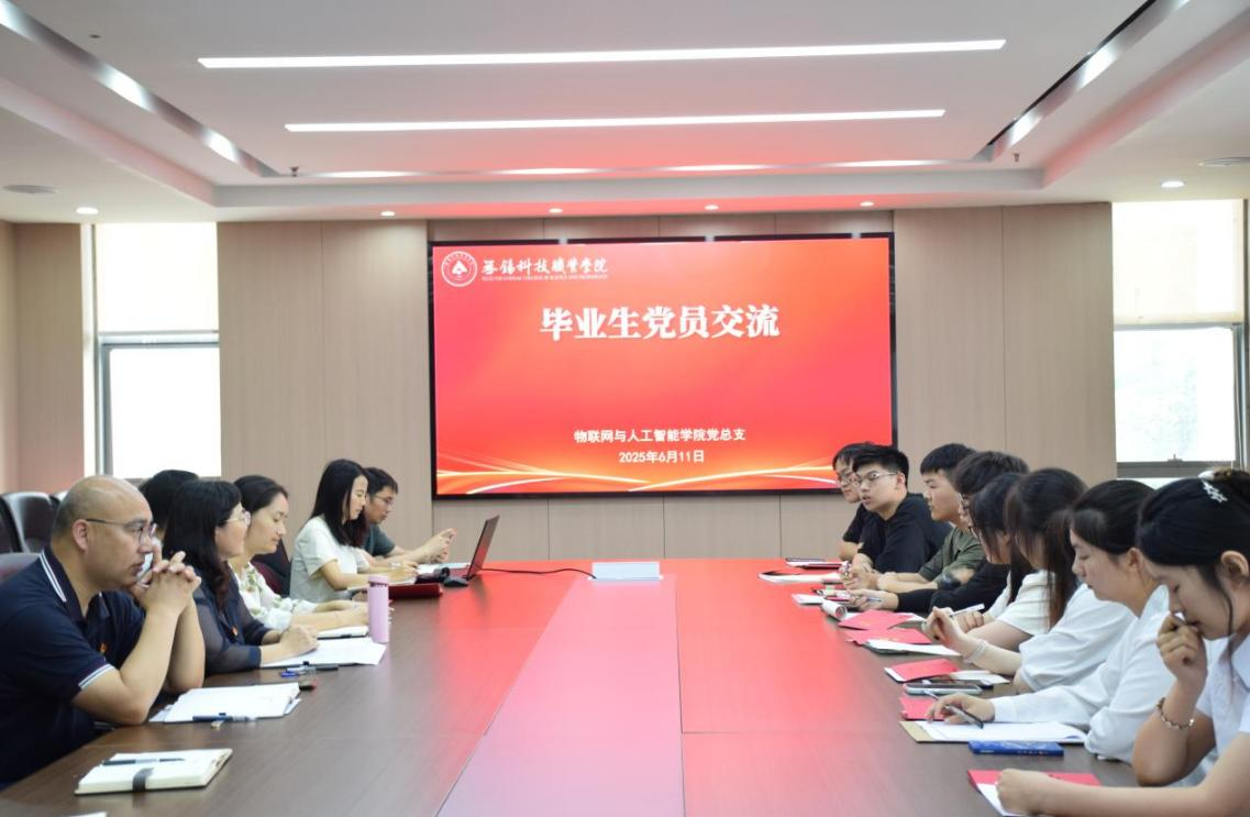 为进一步强化毕业生党员的党性修养,引导其牢记初心使命、坚定理想信念,在文明离校和人生新征程中持续发挥先锋模范作用,6月11日,物联网与人工智能学院党总支组织开展了2025届毕业生党员主题党日活动。毕业生党员、新发展党员、党总支负责人、总支委员、党支部书记、支部委员等共同参与活动。 活动由学院党总支副书记冯薇主持。