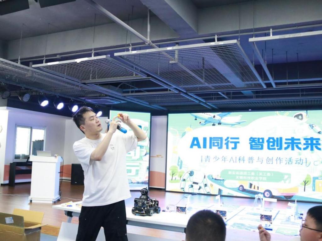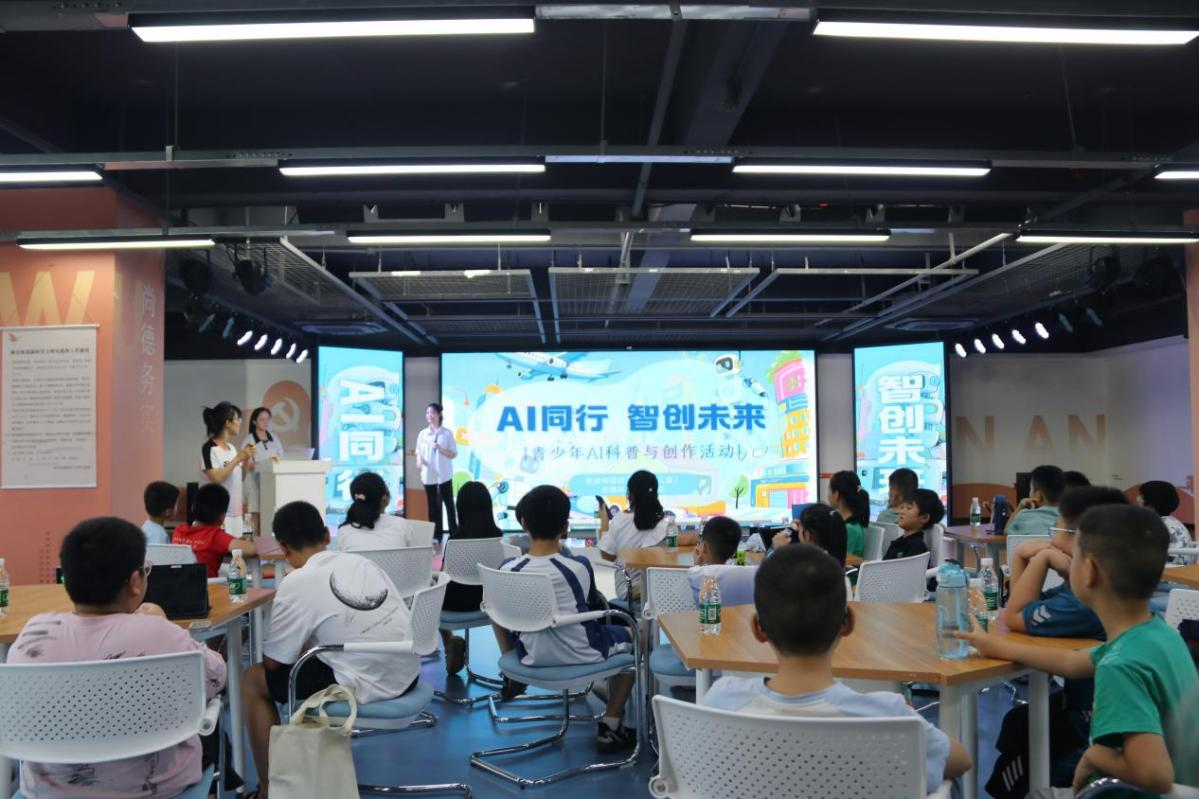蝉鸣盛夏,科技筑梦。7月,一场以“AI同行 智创未来”为主题的青少年暑期科普活动在无锡市新吴区新安街道火热展开。这已是我校物联网与人工智能学院党总支与新安街道党工委作为党建共建单位,连续第三年为辖区青少年精心烹制暑期“科技营养餐”。今年,60名满怀好奇与热情的青少年在人工智能与生成式AI的奇妙世界中,开启了一场启迪思维、畅想未来的科技启蒙之旅。