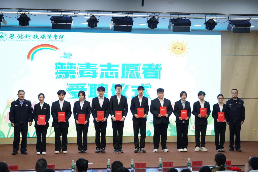 新吴区内保大队队长蒲锋 ,禁毒办副主任、公安分局禁毒大队大队长区胡强代表新吴区禁毒委员会颁发学生禁毒志愿者荣誉证书