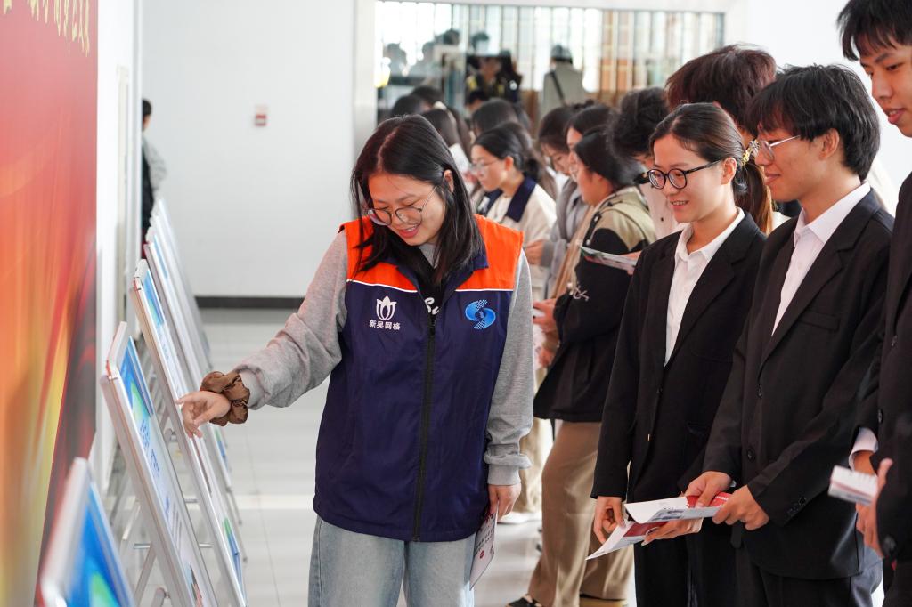 学生干部代表观摩学习禁毒、反诈宣传展板