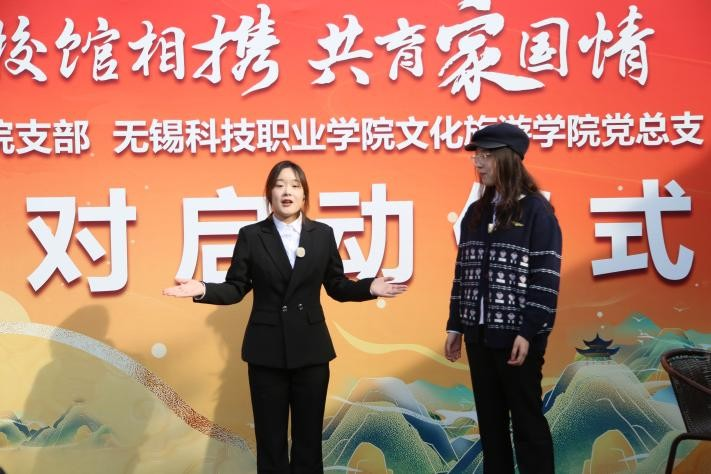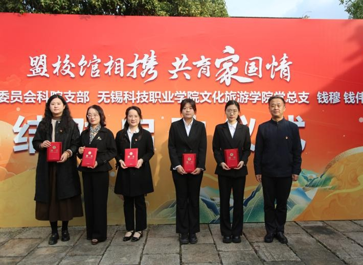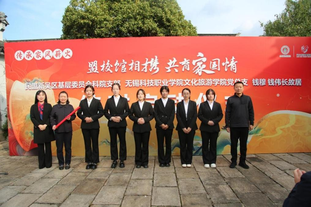 接过民盟新吴区基层委员会主委肖伟民授予的旗帜,由民盟盟员和科院文化旅游学院文化宣讲团共同组建的“青春盟力讲解团”正式成立,它将以钱穆钱伟长故居为实践起点,通过中英文双语讲解、情境教学等创新形式,构建寓知于趣、融教于境的教育创新实践新范式,增强大众对红色精神文化的认知,实现文化传承与专业育人的深度融合。
