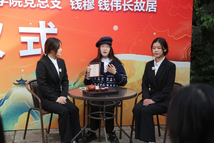 活动现场,“青春盟力讲解团”的学生成员演绎了原创沉浸式中英文情景剧《语通中外・家训传薪》。该剧以钱氏家训为主线,融合中英文双语讲解与跨文化对话,生动展现钱氏家族“爱国、治学、奉献”的家风传承。同学们在情境中诠释家训内涵,在演绎中传递文化力量,充分体现了课堂所学向实践能力的转化,展现了科院文旅学子用英语讲好中国故事、传播时代强音的使命担当。