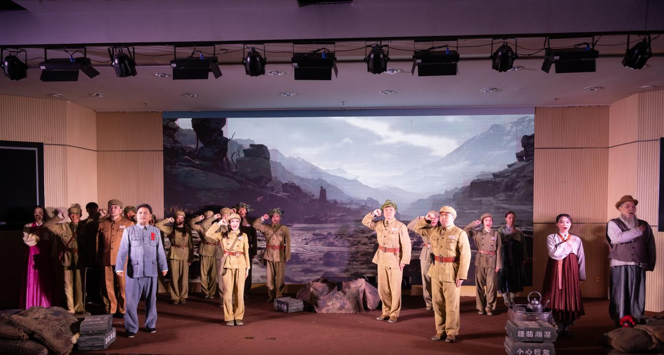 锡剧《英雄儿女》以抗美援朝战争为背景,通过细腻的舞台呈现和演员们的精湛表演,生动再现了志愿军战士们为了保家卫国,英勇无畏、舍生忘死的英雄事迹。舞台上,硝烟弥漫、战火纷飞,演员们用饱含深情的演绎,将现场师生们带回到了那个激情燃烧的岁月。王成的英勇事迹更是让同学们深刻感受到了个人命运与国家命运紧密相连,为了国家和人民,他毫不犹豫地选择了牺牲自己,那句 “为了胜利,向我开炮!” 犹如一道惊雷,震撼着每一位师生的心灵。