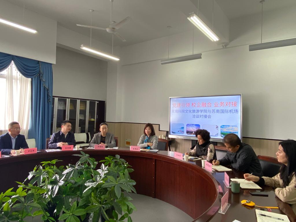 4月16日上午,无锡苏南国际机场集团经营管理有限公司综合管理部副经理朱振强、贵宾服务部经理华维敏一行到学校参观座谈,学校组织部副部长鲍都娇、文旅学院胡光明院长、张姗姗书记、张丽副院长及校组织部、科技合作处相关成员参加了座谈。
