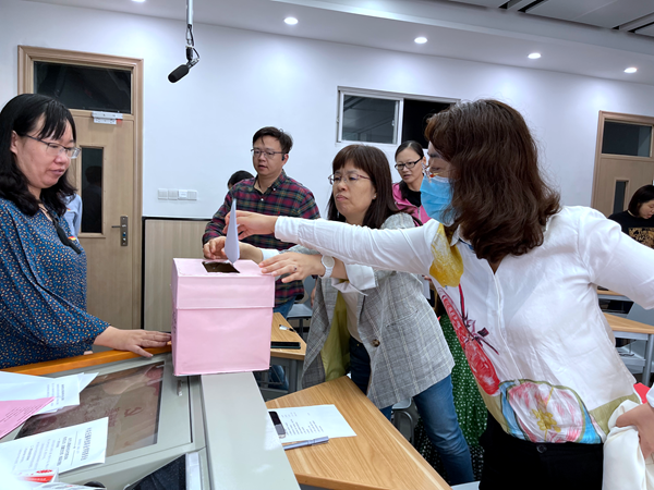 最终,按照选举办法,大会选举边亚明、周雪梅、黄蕾、陈翔、崔谱燕、郁蓉蓉、李平为新一届基础部党总支委员会委员。