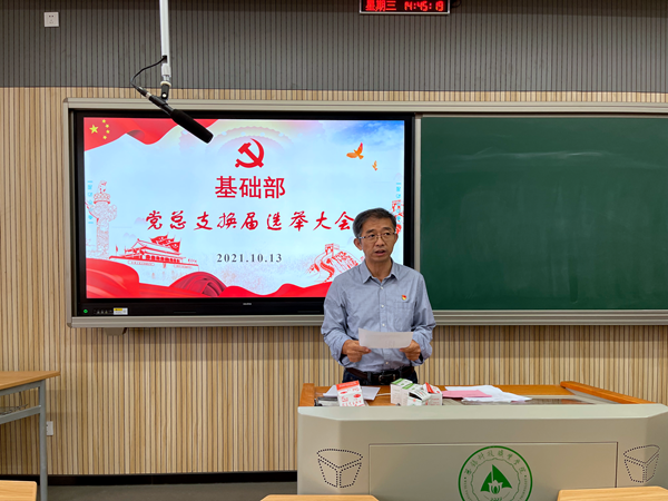 为深入贯彻新时代党建要求,进一步加强党的领导,优化组织结构,夯实基层基础,全面推进基础部党组织建设,不断提高党建工作科学化水平,10月13日下午,基础部党总支在博雅楼203召开基础部党总支换届选举大会,大会由基础部总支书记边亚明主持。