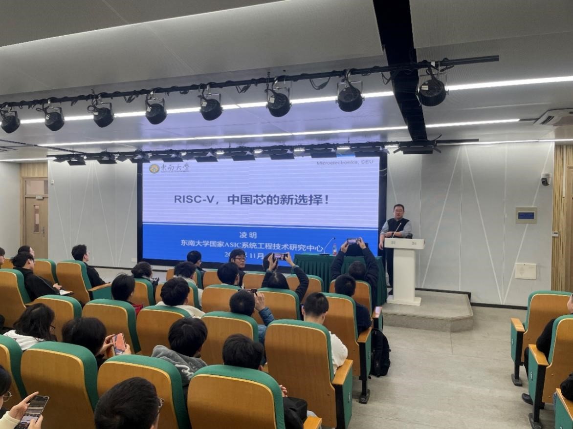 研讨会上,东南大学国家ASIC系统工程技术研究中心凌明教授、钟锐教授分别作题为《RISC-V,中国芯的新选择》《自主多芯片嵌入式系统开发》的主旨报告。