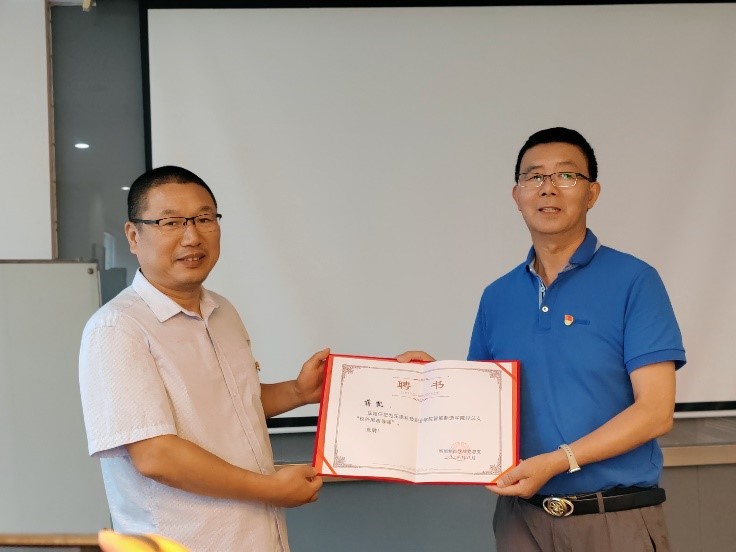 党总支向企业优秀党员颁发校外思政导师聘书。