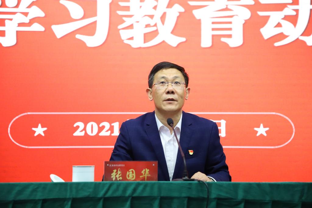 张国华书记指出,在全党开展党史学习教育,是党中央立足党的百年历史新起点、统筹中华民族伟大复兴战略全局和世界百年未有之大变局、为动员全党全国满怀信心投身全面建设社会主义现代化国家而作出的重大决策。全校各级党组织和党员干部务必要深刻认识开展党史学习教育的重大意义,增强开展党史学习教育的政治责任感和使命感,坚定坚决地把思想和行动统一到习近平总书记的重要讲话精神上来,统一到以习近平同志为核心的党中央决策部署上来,积极投身党史学习教育,不断提高政治判断力、政治领悟力、政治执行力,努力推动学校各项事业高质量发展。