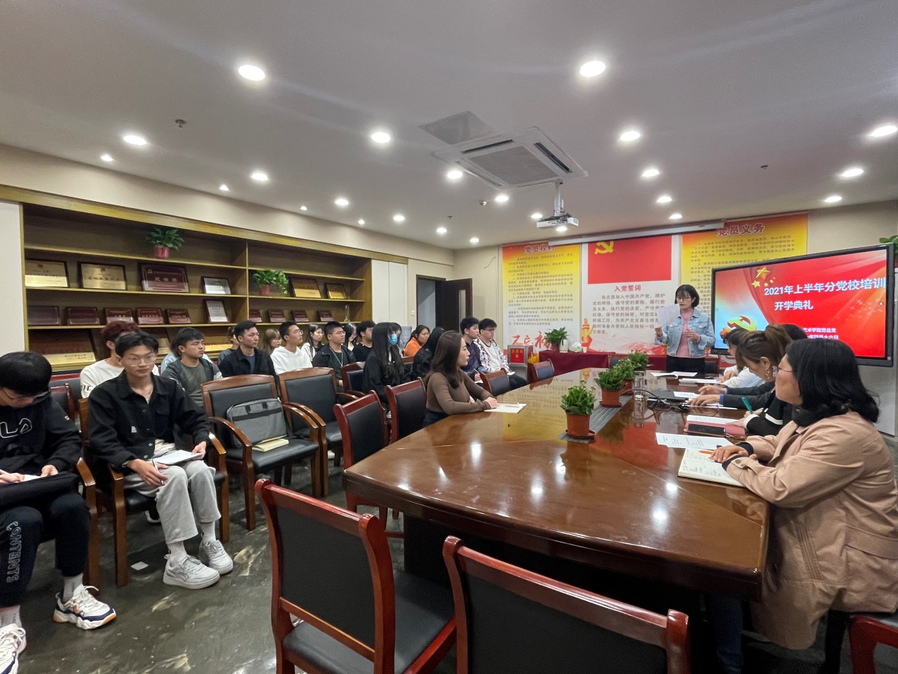 为进一步开展好党的学习教育,增强青年大学生的政治素养,数字艺术学院分党校于4月16日在A608举行了2021年第一期入党积极分子培训班开班典礼。党总支书记党总支书记王淑伟、党总支副书记单敦华、学工办主任蒋裕来、党总支组织委员杨璐璐、党总支宣传委员朱信蓂以及全体2021年入党积极分子参加了此次开班典礼。