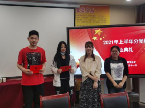 本次分党校结业典礼由朱老师主持,她首先对本期党课学习进行了总结,并回顾了整个课程内容和活动内容,并对在座的学生表示了祝贺,恭喜大家顺利完成分党校的党课培训并圆满结业。
