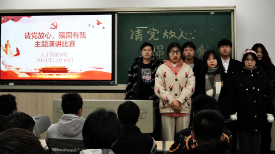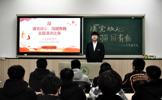 为深入学习贯彻习近平总书记在庆祝中国共产党成立100周年大会上的重要讲话精神,贯彻落实十九届六中全会精神,使我院学生充分了解中国共产党的历史,深入理解“传承红色基因,弘扬革命精神”的理想信念。人工智能学院于2021年12月19日利用晚自习时间组织各班进行“请党放心,强国有我”主题演讲比赛。学生会代表、学生代表在各班担任本次比赛评委,我院学生积极报名参赛。