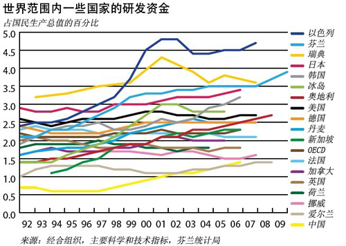 3)企业是技术创新的重要参与者,也是技术成果的直接受益者。芬兰企业多设有科学研究机构和技术开发部门。芬兰最大的20家企业的研发支出的总和是大学的2倍。