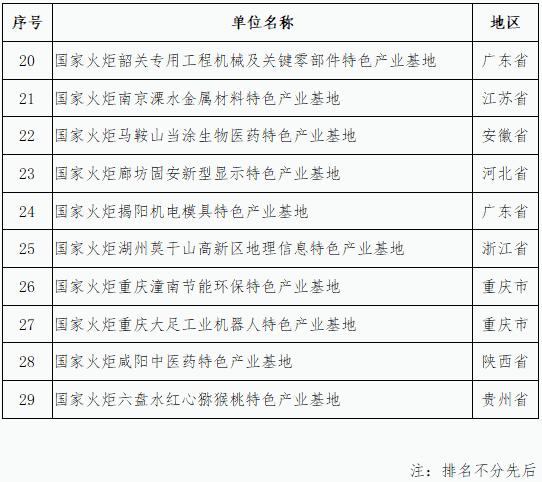 根据《国家火炬特色产业基地建设管理办法》(国科火字〔2015〕163号)有关规定,经地方政府申请、省级科技行政主管部门推荐、专家评议论证等程序,现对拟核定为2020年第一批29家国家火炬特色产业基地(见附件)予以公示。