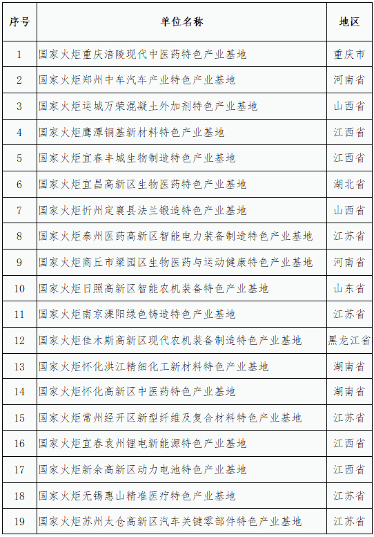 拟核定为2020年第一批国家火炬特色产业基地名单