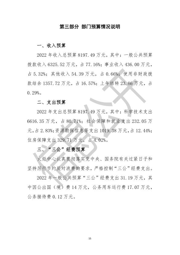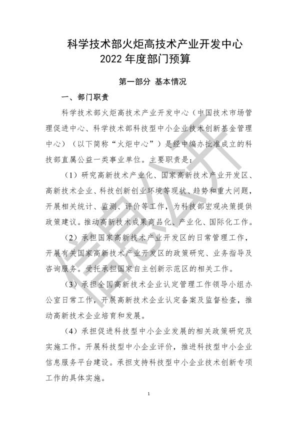 科学技术部火炬高技术产业开发中心2022年度部门预算
