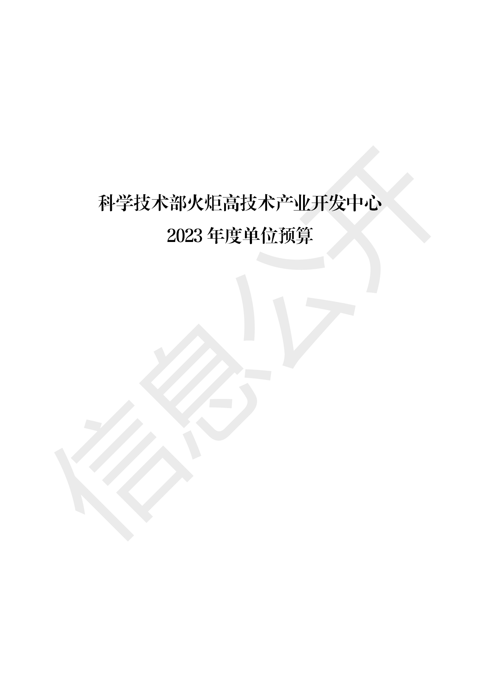 科学技术部火炬高技术产业开发中心2023年度单位预算