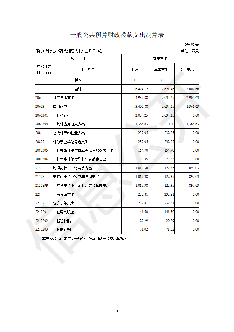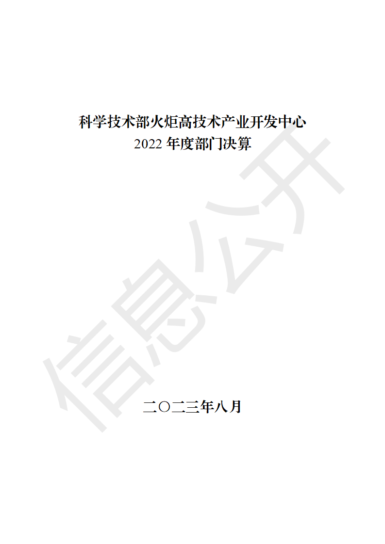 科学技术部火炬高技术产业开发中心2022年度部门决算