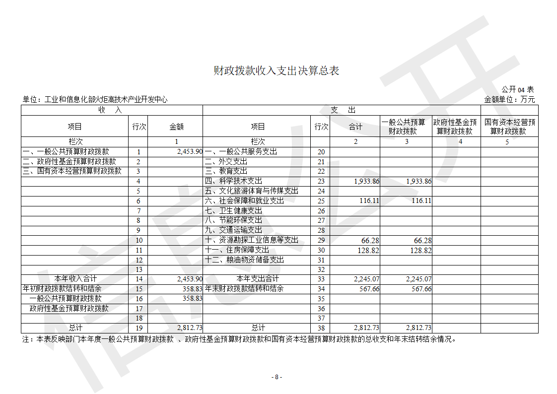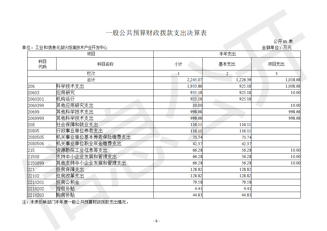 工业和信息化部火炬高技术产业开发中心2024年度部门决算