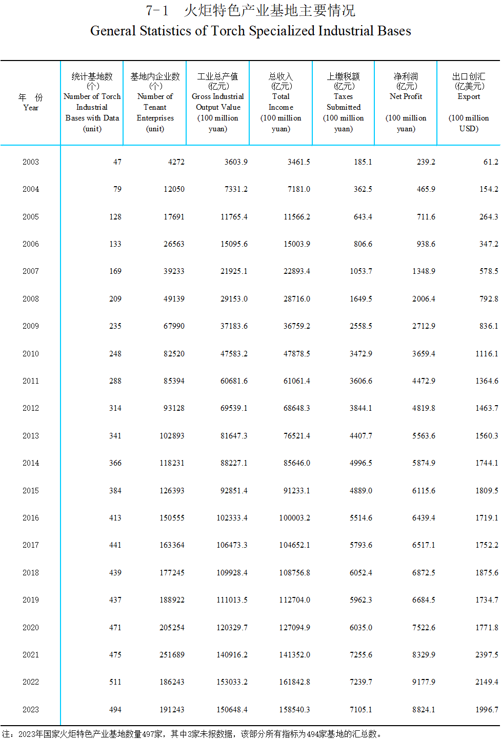 2023年火炬特色产业基地主要经济指标