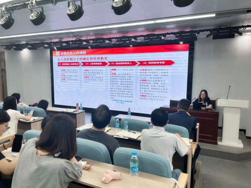 党委组织部组织科丁洁宇向各位与会成员介绍了党员发展的流程,她结合实际操作过程中遇到的各类问题,详细说明并强调了《入党积极分子培养考察表》以及《入党志愿书》的填写规范,并提出各基层党组织党务工作人员应提高思想认识,严格程序和规范,把好党员发展的质量关,扎实做好党员发展工作。