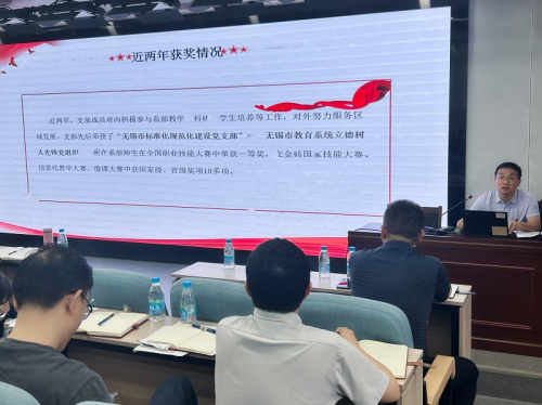 物联网与人工智能学院云计算与信息党支部书记樊光辉围绕“党支部工作实务”,从组织设置、班子建设、组织生活、党员教育监督、活动开展以及基础保障6个方面分享了本支部党建工作的经验和做法。作为“无锡市标准化规范化建设党支部”以及无锡市教育系统“立德树人先锋党组织”获得单位,云计算与信息党支部始终紧紧围绕学校双高建设重点工作,聚焦“立德树人”,创新党建工作模式,起到了很好的示范引领作用。