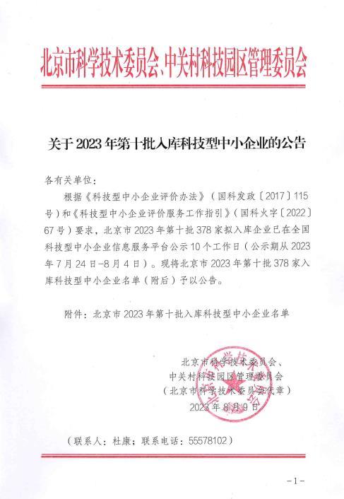 北京市2023年第10批入库科技型中小企业名单公告正文.jpg PICTURE