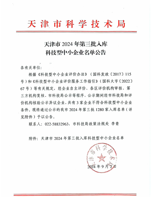 天津市2024年第3批入库科技型中小企业名单公告正文.jpg PICTURE