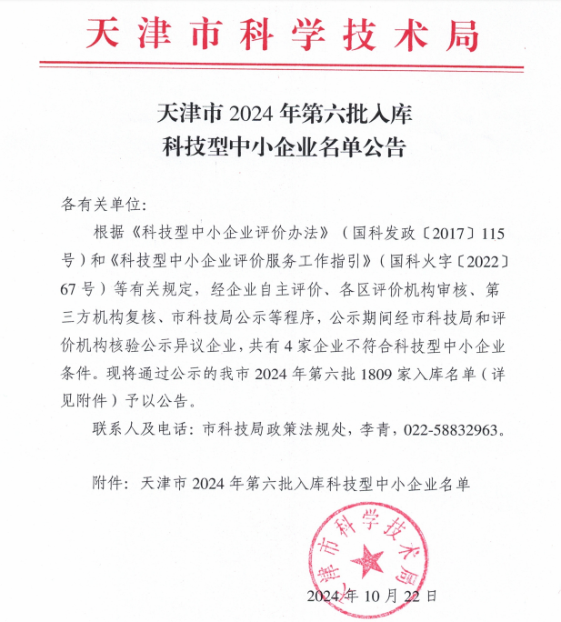 天津市2024年第6批入库科技型中小企业名单公告正文.jpg PICTURE