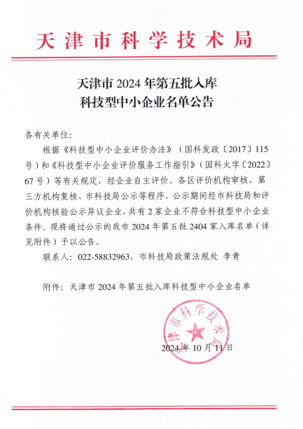 天津市2024年第5批入库科技型中小企业名单公告正文.jpg PICTURE