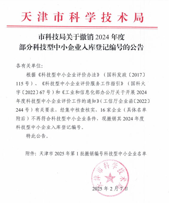 天津市2025年第1批撤销编号科技型中小企业名单.pdf FILE