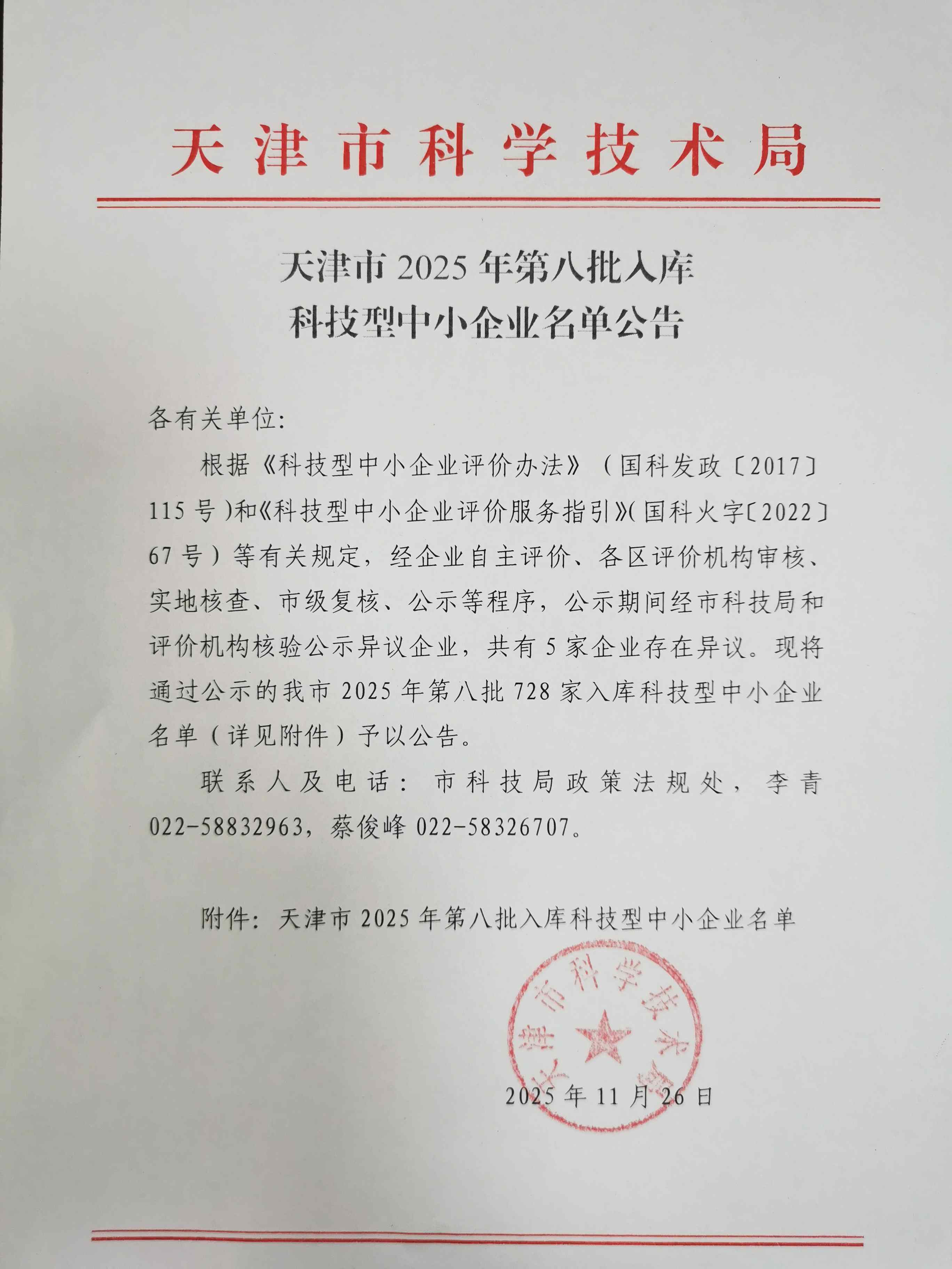 天津市2025年第8批入库科技型中小企业名单公告正文.jpg PICTURE
