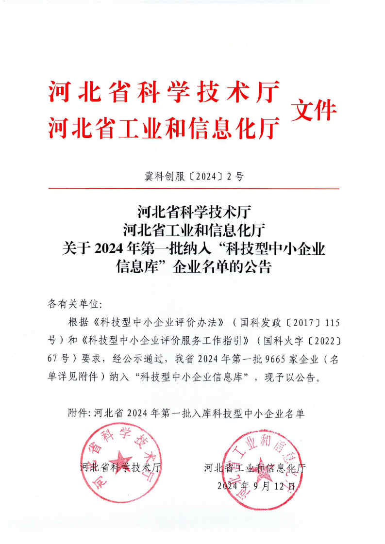 河北省2024年第1批入库科技型中小企业名单公告正文.jpg PICTURE