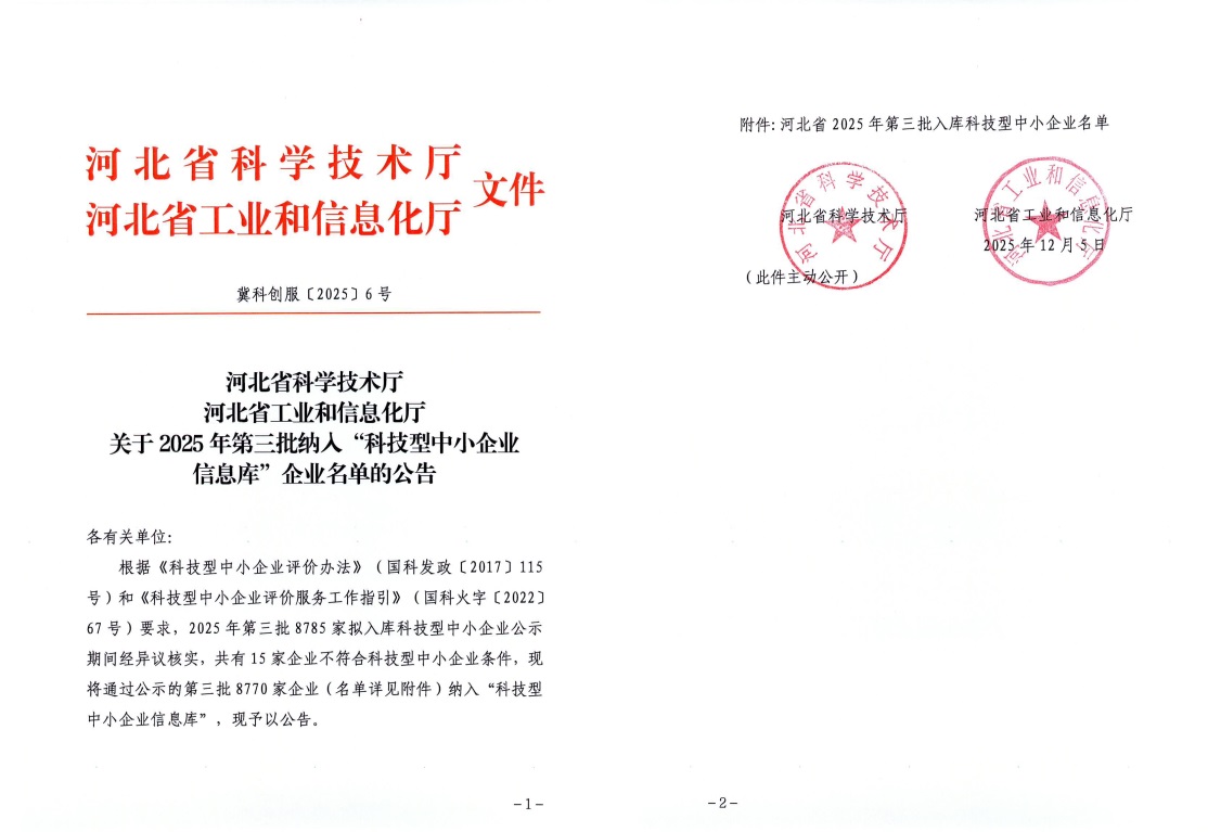 河北省2025年第3批入库科技型中小企业名单公告正文.jpg PICTURE