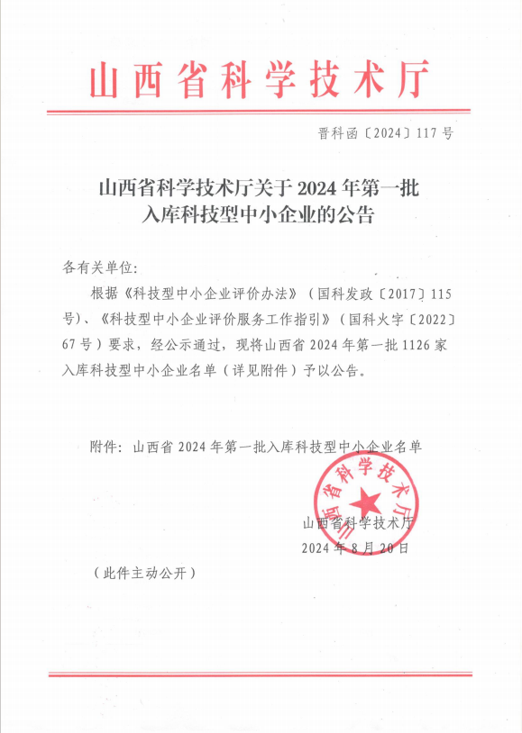 山西省2024年第1批入库科技型中小企业名单公告正文.jpg PICTURE