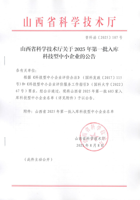 山西省2025年第1批入库科技型中小企业名单公告正文.jpg PICTURE
